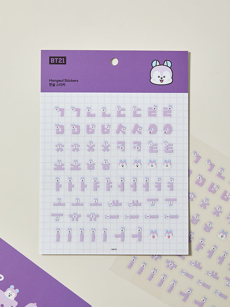 Witty stickers of BT21 characters whose gestures form HANGEUL Consonants and Vowels. Create any Korean letters you want by combining them freely! Exclusively available at LINE FRIENDS SQUARE online and offline stores in Korea only!