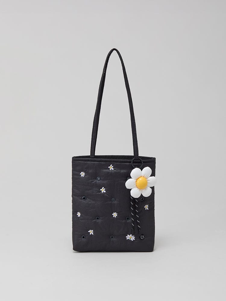 Product dimensions: 220*250 (excluding handle) / Handle 300*50 (mm) - Material: Shoulder Bag: Shell: 100% Nylon, Lining: 100% Polyester / Flower Padded Keychain: Shell: Polyurethane (PU), String: 100% Polyester, Carabiner: Zinc Alloy